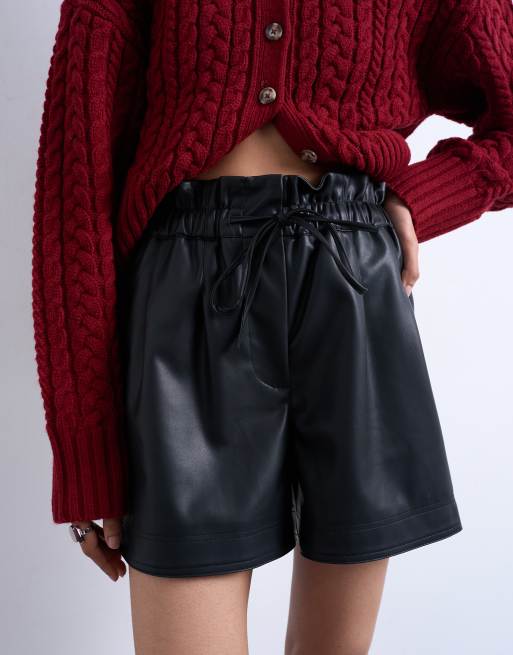 Topshop - Short imitation cuir à taille haute froncée - Noir