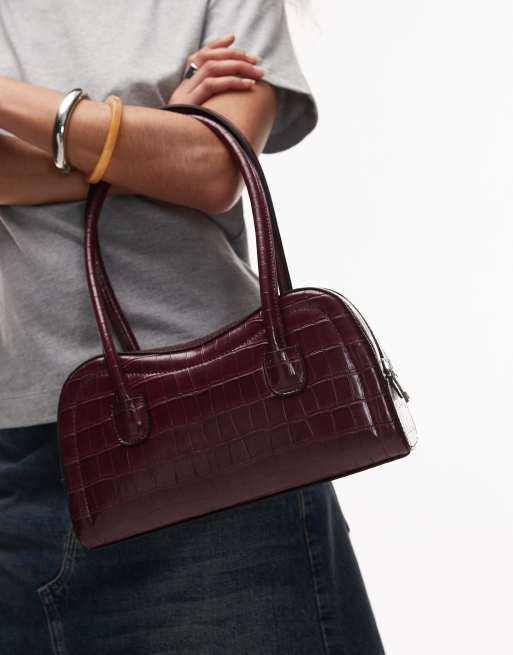 Topshop - Simba - Sac porté épaule structuré effet croco - Bordeaux
