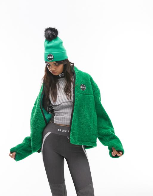 Topshop - Sno - Veste en imitation peau de mouton et polaire à fermeture éclair - Vert