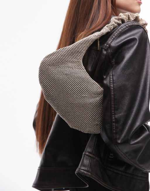 Topshop - Solane - Sac porté épaule à strass avec poignée froncée - Doré