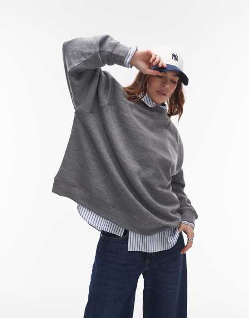 Topshop - Sweat oversize à manches raglan - Gris foncé chiné