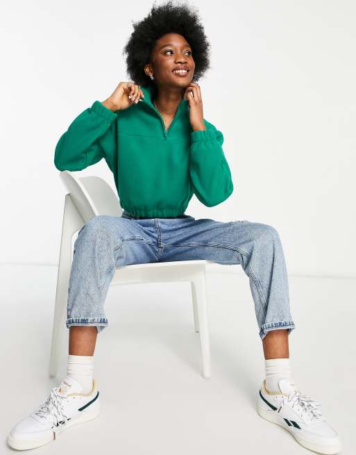 Topshop - Sweat polaire coupe dad zippé - Vert