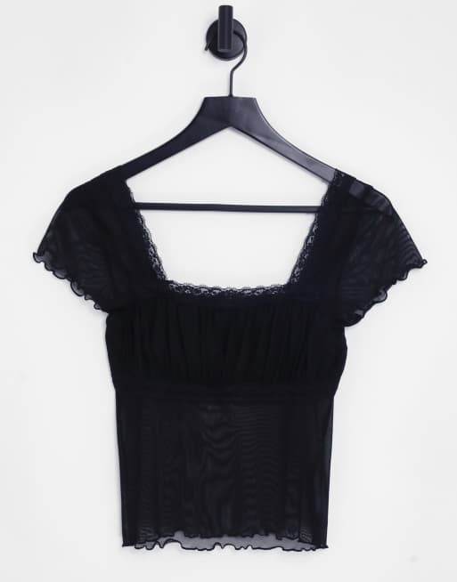 Topshop - T-shirt bordé de dentelle et tulle - Noir