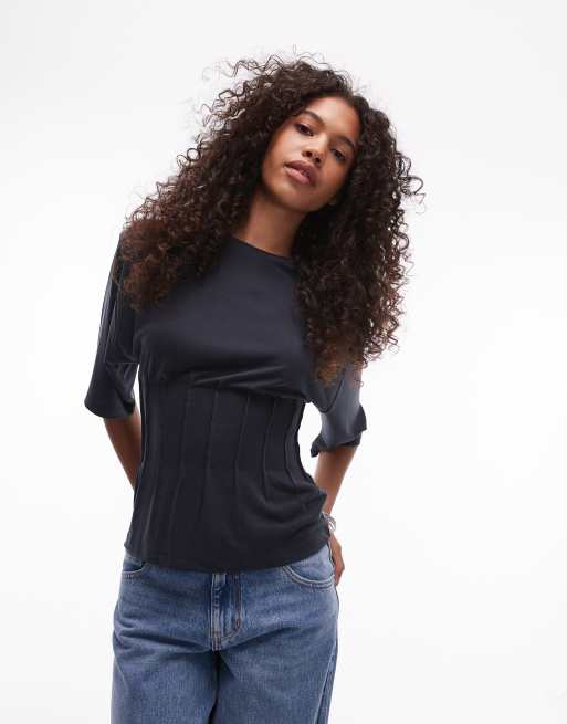 Topshop - T-shirt nervuré en cupro - Ardoise