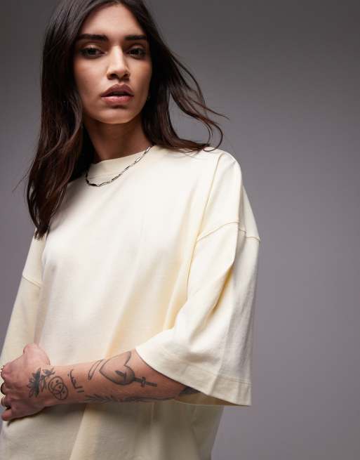 Topshop - T-shirt oversize à épaules tombantes - Babeurre frais
