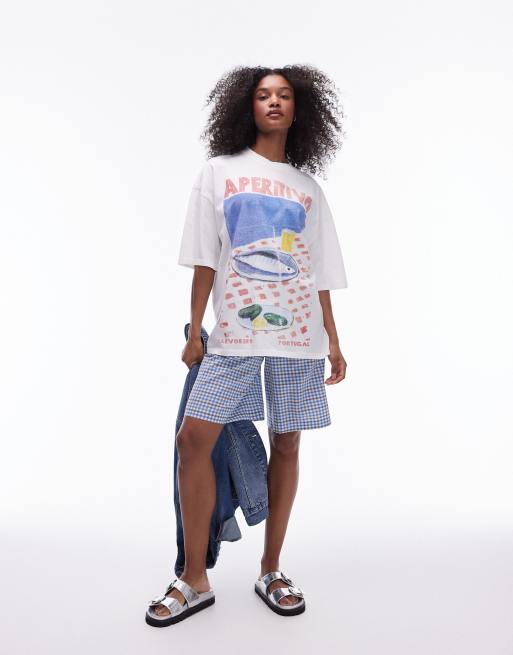 Topshop - T-shirt oversize à imprimé graphique - Écru