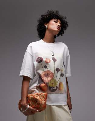 Topshop - T-shirt oversize à imprimé nature morte - Blanc
