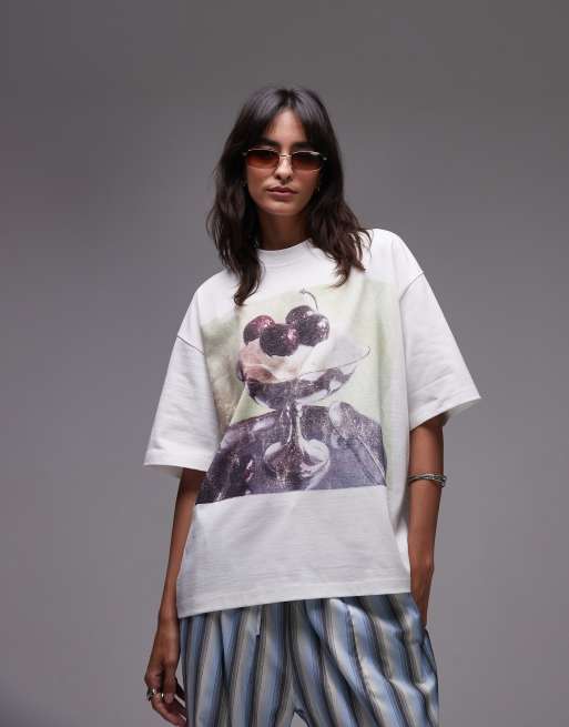 Topshop - T-shirt oversize à inscription crème glacée - Blanc