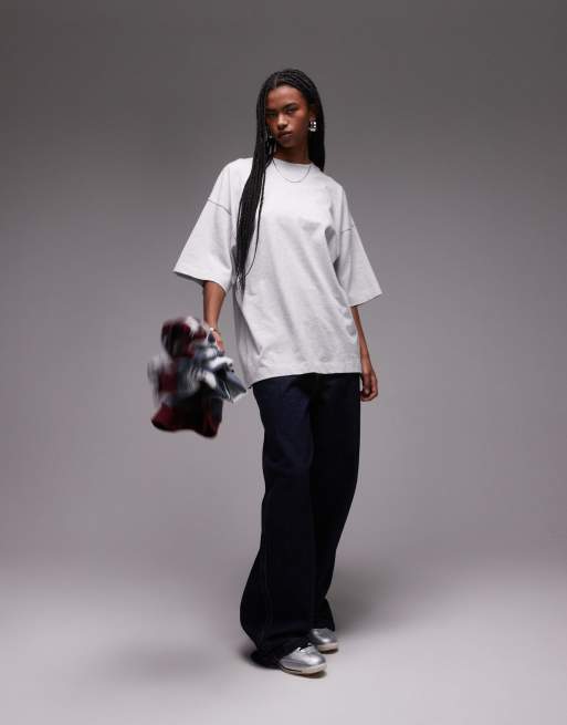 Topshop - T-shirt oversize avec épaules tombantes - Gris moyen délavé
