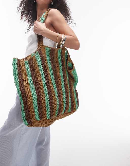 Topshop - Tana - Tote bag oversize en paille tressée - Vert à rayures