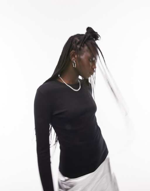 Topshop - Top ajusté à manches longues - Noir
