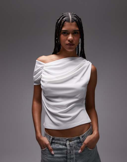 Topshop - Top asymétrique à détail froncé - Ivoire