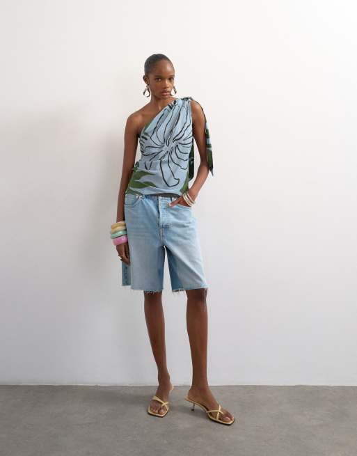 Topshop - Top d'ensemble asymétrique à imprimé feuilles abstrait - Bleu