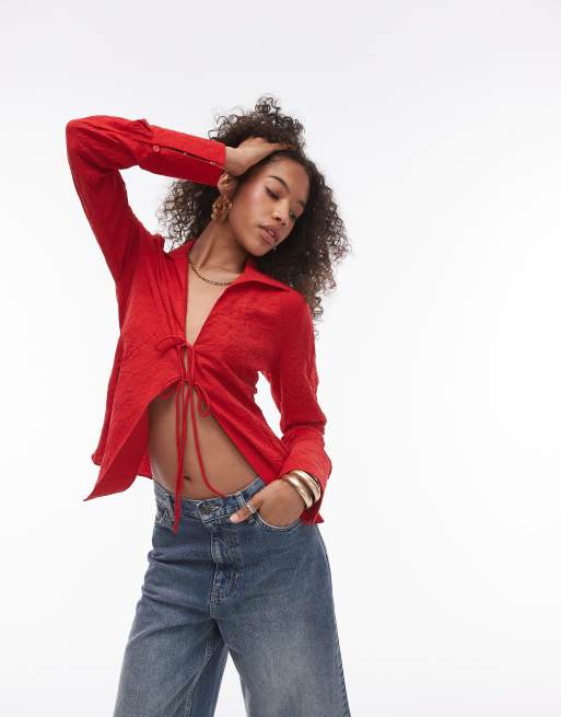 Topshop - Top effet froissé noué sur le devant - Rouge