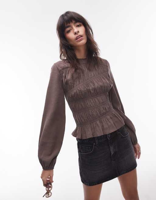 Topshop - Top froncé asymétrique - Marron