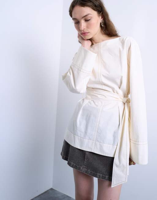 Topshop - Top noué à la taille - Écru