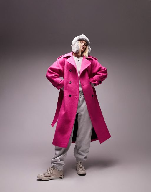 Topshop - Trench-coat brossé ultra oversize - Rose vif