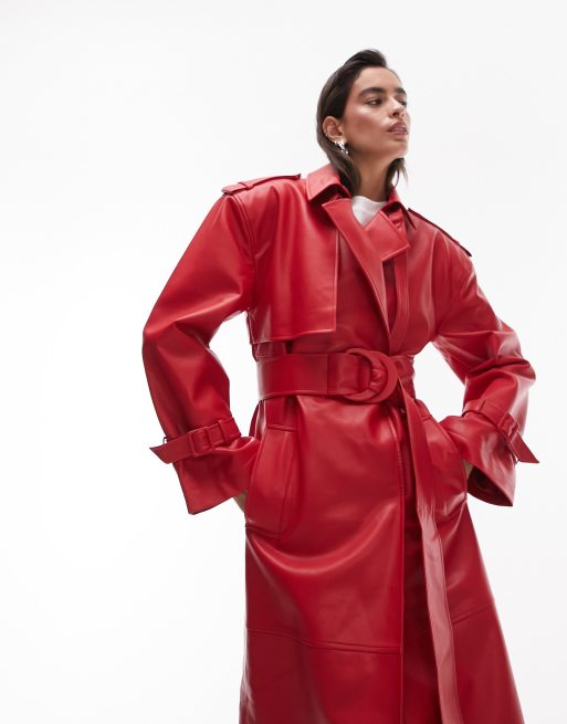 Topshop - Trench-coat long en similicuir - Rouge