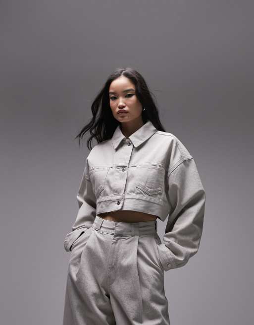 Topshop - Veste courte d'ensemble en jean - Taupe