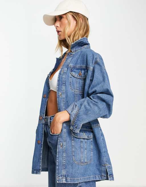 Topshop - Veste en jean à enfiler style années 70 - Bleu moyen