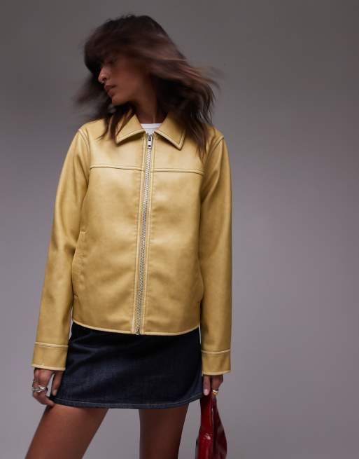 Topshop - Veste en similicuir à fermeture éclair centrale - Jaune