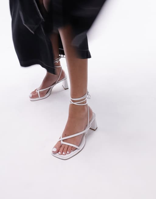 Topshop Wide Fit - Ellis - Sandales à talon carré et lanières nouées - Blanc