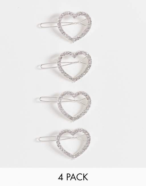 True Decadence - Exclusivité - Lot de 4 mini barrettes avec strass et cœur - Argenté