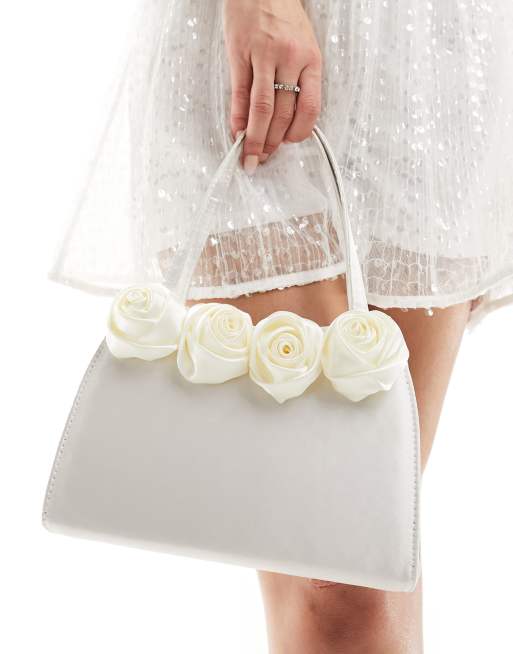 True Decadence - Pochette de mariée avec roses en satin - Crème