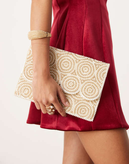 True Decadence - Pochette enveloppe avec perles nacrées et perles fantaisie - Blanc