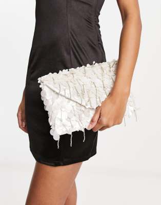 True Decadence - Pochette ornementée de perles et sequins - Blanc