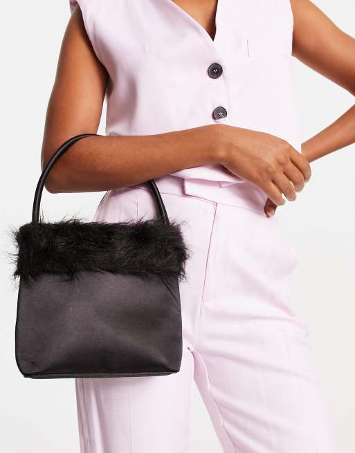 True Decadence - Sac à main en satin bordé de fausse fourrure duveteuse - Noir
