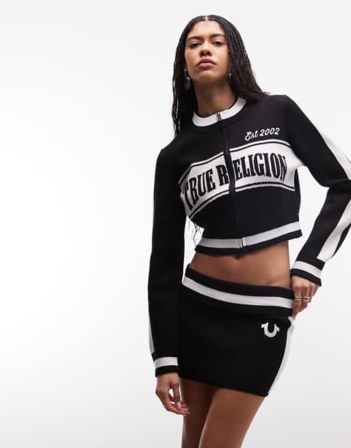 True Religion - Mini-jupe d'ensemble à taille basse en jacquard - Noir