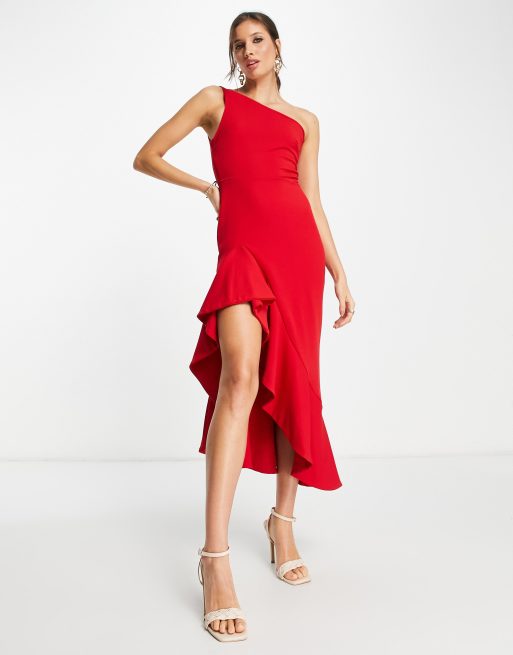 True Violet - Robe mi-longue asymétrique à volants - Rouge