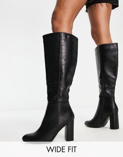 Truffle Collection - Bottes hauteur genou à talons, pointure large - Noir