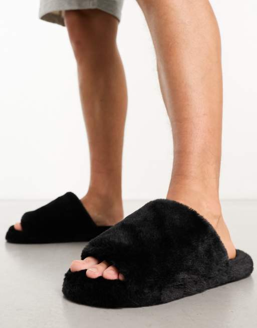 Truffle Collection - Chaussons style claquettes en fausse fourrure avec bout ouvert - Noir