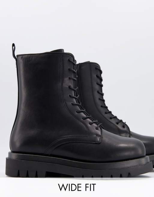 Truffle Collection - Pointure large - Bottines lacées à semelle chunky style militaire - Noir