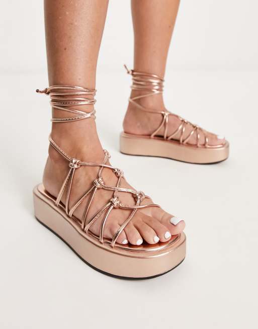 Truffle Collection - Sandales avec lanières nouées sur la cheville - Or rose