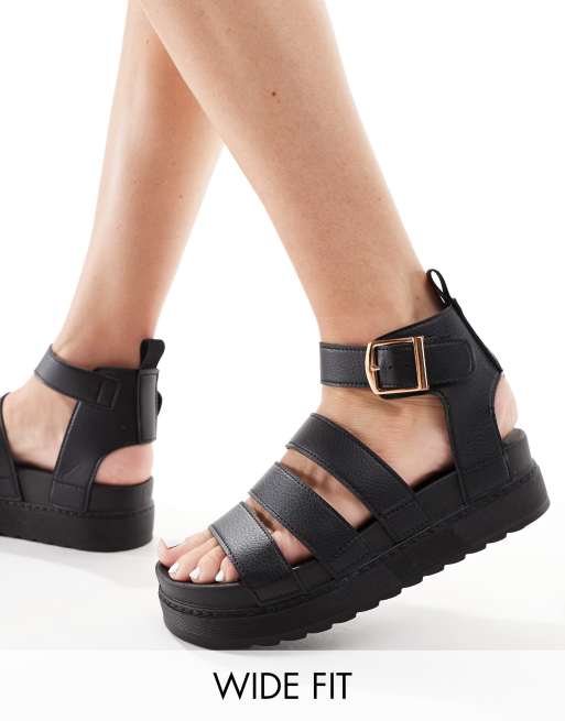 Truffle Collection - Sandales larges à larges brides - Noir