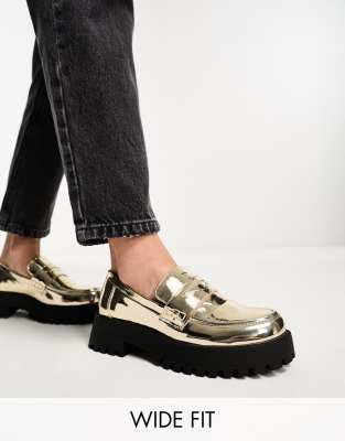 Truffle Collection Wide Fit - Mocassins à semelle chunky et bout arrondi - Doré métallique