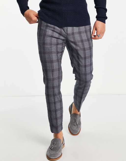 Twisted Tailor - Conrad - Pantalon fuselé à carreaux - Gris foncé