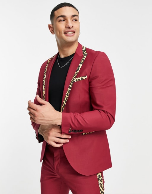 Twisted Tailor - Costume avec empiècement contrastant à imprimé léopard - Rouge