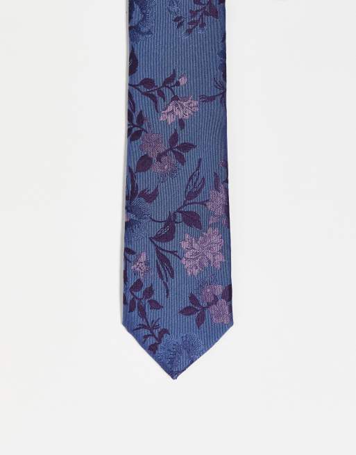 Twisted Tailor - Cravate à motif floral ton sur ton - Bleu marine