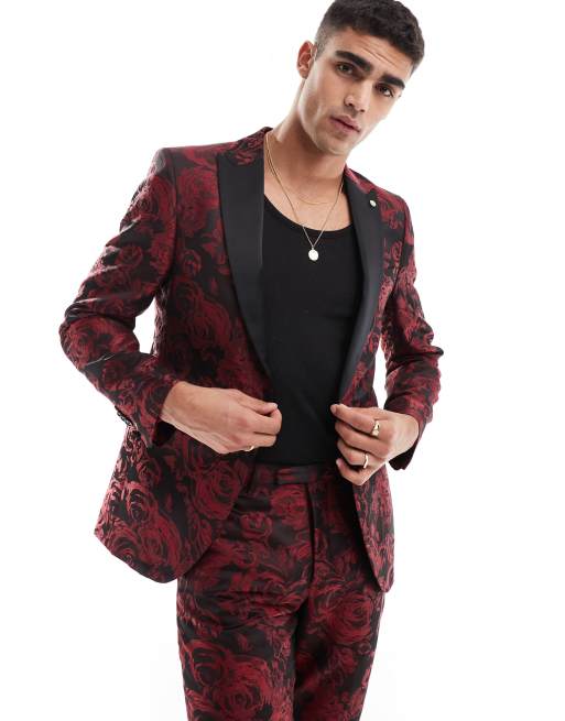 Twisted Tailor - Ersat - Veste de costume d'ensemble ajustée à fleurs - Rouge
