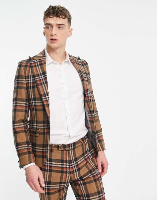 Twisted Tailor - Nevada - Veste de costume ajustée à carreaux écossais - Beige et bleu