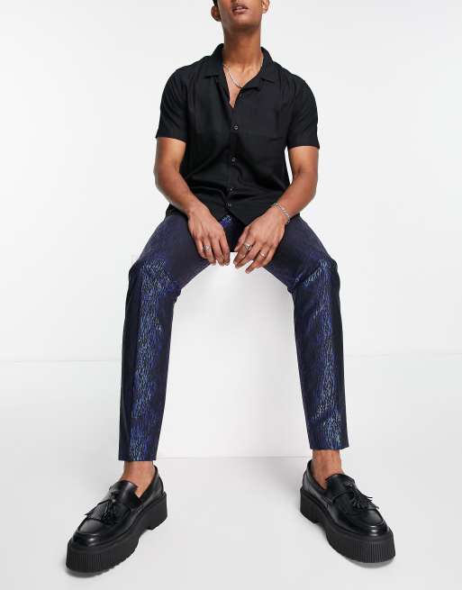 Twisted Tailor - Pantalon de costume avec imprimé métallisé - Noir et bleu électrique délavé