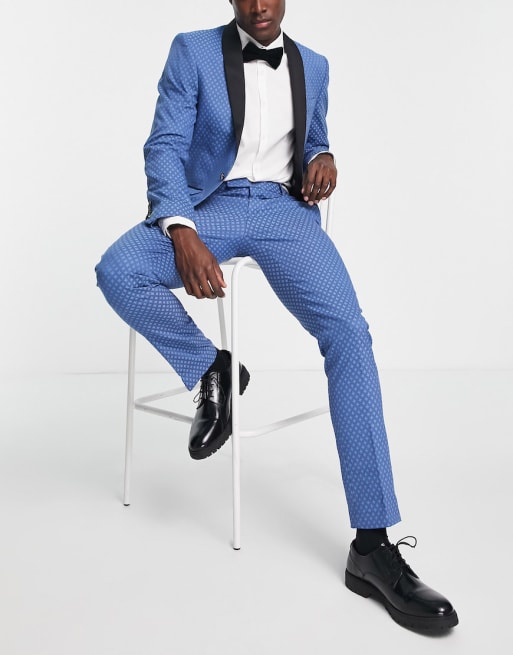 Twisted Tailor - Perlman - Costume en jacquard avec revers noirs - Bleu
