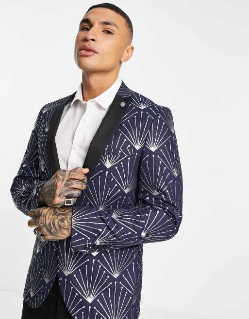 Twisted Tailor - Veste de costume avec imprimé géométrique argenté - Bleu marine