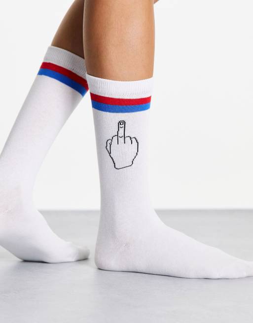 Typo - Chaussettes rayées à motif doigt d'honneur - Blanc