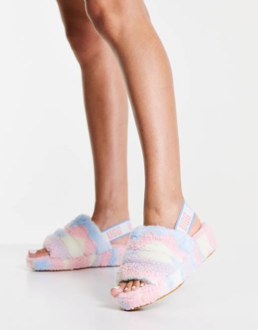 UGG - Fluff Yeah - Chaussons style mules à rayures arc-en-ciel Pride