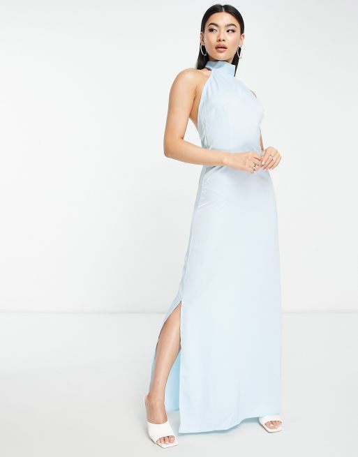 Unique21 - Robe longue avec lien à l'encolure et ourlet fendu - Bleu pastel
